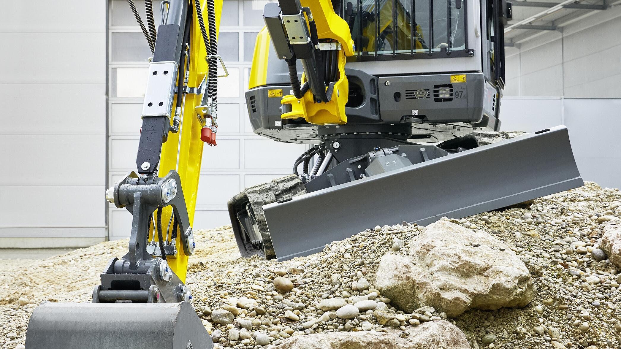La nueva excavadora ET58 de 5,5 toneladas destaca por su alto rendimiento, gran estabilidad, elevadas fuerzas de elevación y de excavación y ciclos de trabajo rápidos. El innovador sistema hidráulico Load Sensing Flow Sharing garantiza un control preciso y una alta eficiencia: la máquina se adapta automáticamente a la carga y los movimientos del joystick que debe realizar el usuario son siempre iguales. Eso hace que trabajar con la excavadora resulte muy cómodo. La señal de trabajo activo (Active Working Signal, AWS) garantiza la seguridad de las personas que están en el entorno de la excavadora: En cuanto la excavadora está lista para su uso, una tira de LED rojos integrada en el capó del motor se ilumina e indica a todas las personas de la obra que la excavadora está en uso.